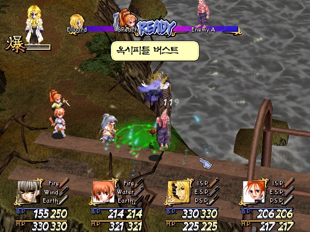 2차전이 시작하기 직전 센스쟁이 아이가 전체 회복 마법을 사용하여 최상의 상태로 전투를 시작 합니다.