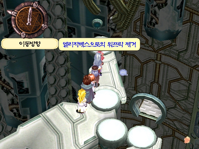 아마도 지금 위치는 위 지도에서 현재 위치로 표시한 방주의 가장 아랫 부분인듯 싶은데요. 방금 가동된 워프 시스템을 이용해 꼭대기까지 올라가는 방식인 거 같습니다.